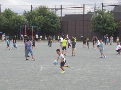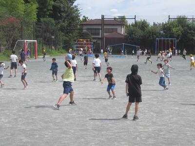 中休み 久しぶりに校庭で遊ぶことができました。薄曇りでしたが、湿度は高かったです。