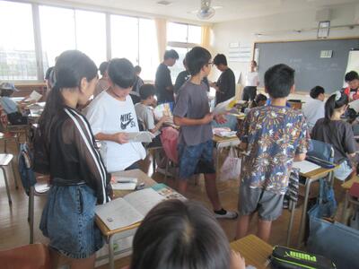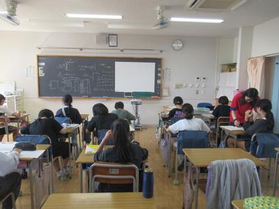 6年生 中学校の授業体験のため和田中学校へ行きました。中学校の生徒会による学校紹介の後、先生方による各教科の授業を50分体験しました。