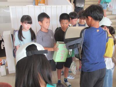 6年生 総合的な学習の時間に環境問題について学んでいます。「えねこや」特別授業を行いました。再生可能エネルギーだけを使って発電される家に興味津々でした。