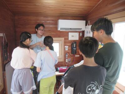 にじ組 「えねこや」さんの特別授業がありました。再生可能エネルギーだけで電気をまかなう家に驚いていました。