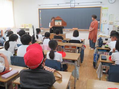4年生 今朝は恵泉女学園大学「クプカシスターズ」による紙芝居アクトがありました。韓国のお話でした。