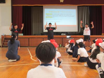 5年生 学年集会では、運動会に向けた取組が始動しています。