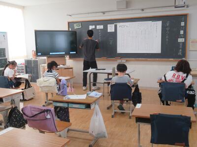 4年生 たくさんの計算問題に挑戦しました。わり算に苦戦していました。