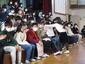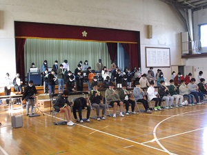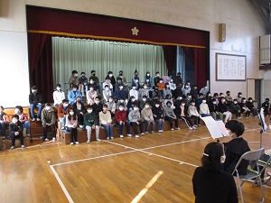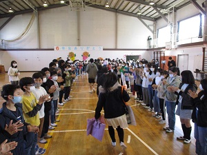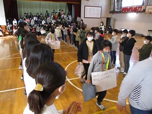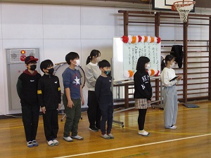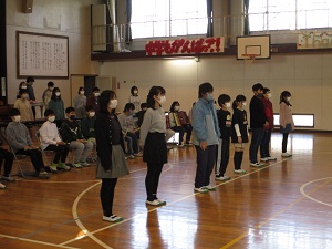 「6年生を送る会」が行われました。6年生に、これまでありがとうという感謝の気持ちと中学校へ行ってもがんばってほしいという応援の気持ちを込めて、各学年趣向を凝らした発表になりました。元気いっぱいに踊ったり、クイズで盛り上がったり、6年生と対決したりしました。笑いあり、しっとりする場面あり、すてきな「6年生を送る会」になりました。6年生が発表した合奏「ミックスナッツ」。テンポのいい迫力ある演奏でした。6年生の真剣な表情が目に焼き付いています。がんばる6年生の姿を見られるのも、後わずかとなったのが淋しいです。6年生の皆さん、残り16日を、感謝の気持ちをもって、友達との仲を深め、大切に過ごしてください。