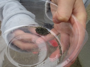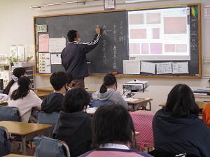 今日はとても寒い日でした。昼間でも5℃位までしか気温が上がりませんでした。それでも子供たちは元気いっぱい。中休みの持久走に取り組み、にじ組は体育でサッカーをやっていました。図書の時間、読みたい本を探す1年生。6年生は道徳、5年生は総合の調べ学習を行っていました。2年生は算数の学習。テープ図を使って計算の考え方を発表していました。階段の隅にしゃがんでいる3人の女の子。ひそひそ話をしているのではありません。次の写真にあるように、砂を集めていました。砂と言っても普通の砂ではなく、「砂鉄」です。磁石を使って一生懸命集めていました。寒さなんか吹っ飛んでしまいますね。インフルエンザも少しずつ広がっているようです。健康に過ごせるよう、感染症対策をお願いします。