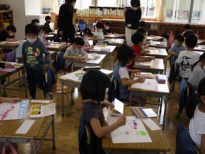 今日は、1年生特集です。図工の授業と下校の様子です。クレヨンを使って「ぼくのわたしのすきなもの」というテーマで描きました。おにぎりを描いたり、好きなキャラクターを描いたり、どの子もとっても上手でびっくりしました。とても集中して画用紙に向かっている姿は、すっかり小学生です。3時間の授業を終わり、下校の準備。方面別に並ぶのが早くなりました。「さようなら~。」の声をかけると、「さようならー!」の元気な声が返ってきて、こちらも元気をもらいます。また明日、元気に登校しましょう!
