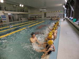 GWも終わり、日常の学校生活が戻ってきました。連休明けですが、今日からNAS聖蹟桜ヶ丘での水泳指導が始まり、1・2年生、にじ組の子供たちが行ってきました。学校の前までバスが迎えに来て出発です。帰りもバスで送ってくれます。至れり尽くせりの水泳の学習です。今日は、一連の流れを覚えるのが一番の目的なので、プールに入っている時間は短かったのですが、みんな口々に「楽しかった~!」と言っていました。次回からは、もっとたっぷり泳げるでしょう。教員にとっても初めてのことなので、様々な対応を想定してでの引率でした。事故なく充実した水泳指導となるよう、連絡を密にして行っていきます。