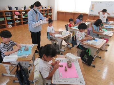 にじ組 図工の学習で、粘土を使って自分のペットを作りました。お気に入りの作品が完成しました。