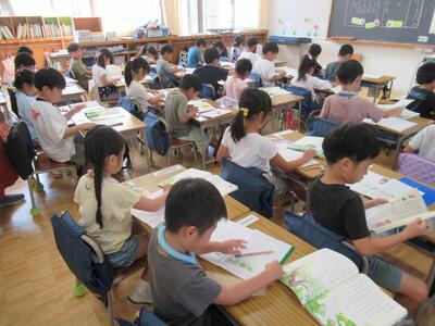 4年生 集中して読書を楽しんでいます。静かな時間が流れています。