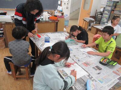 1年生 図工では「パクパックン」という紙工作をしていました。