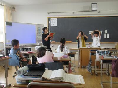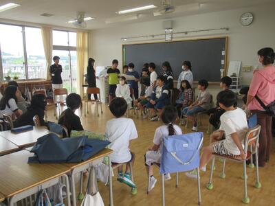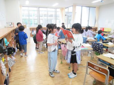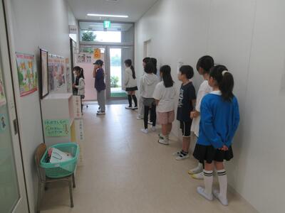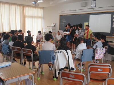 3年生 中休みにSDGs係の人が環境に関する絵本を読んでくれました。1~3年生が大勢聞きに来ていました。