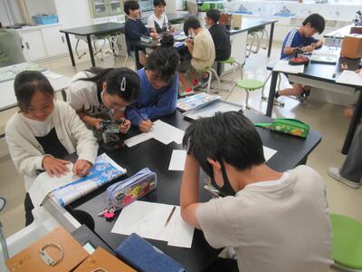 5年生 理科ではメダカの卵の観察をしていました。じっくり観察して書いていました。