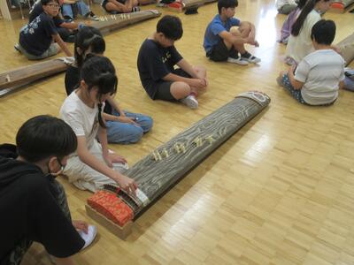 6年生 音楽ではお箏の練習をしていました。「さくらさくら」を演奏しました。