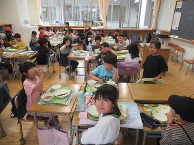 2年生 おしゃべりがはずみ、楽しそうに食べていました。いわしのかば焼きもよく食べていました。