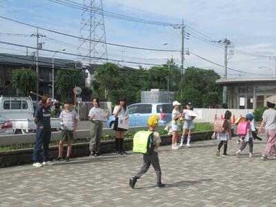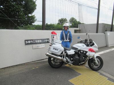 登校時 多摩中央警察署の方が見守りパトロールに来てくださいました。