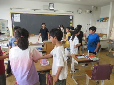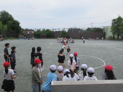 昼休み たて割り班活動がありました。教室では「何でもバスケット」、校庭では「ドンじゃんけん」をして遊びました。6年生の皆さん、楽しい時間をありがとう!!