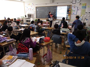 昨日久し振りに降った雨のためか、今日は空気がすっきりした感じがします。今はお休みも少なく、子供たちは元気に学校に通っています。5年生は、卒業式の会場設営でたくさんのパイプ椅子を並べてくれました。テキパキと働く5年生、とても立派です。6年生は、卒業式の呼びかけ練習です。真剣さが伝わってきます。今日を入れて後8日。どんな気持ちで卒業式練習に臨み、毎日を過ごしているのでしょうか。6年生の皆さん、応援しています。2年生は、新座市立東野小学校の子供たちとオンラインで交流を行いました。そんなことができる時代です。ICTの発展は本当に驚かされます。子供たちは東野小学校の子供たちの発表を一生懸命聞いていました。図工や社会、プリント整理、テスト…など、学級それぞれ残り少ない時間の中、しっかり取り組んでいます。下校庭の椿が満開です。桜の開花宣言ももうすぐのようです。春は、一歩一歩近づいてきています。