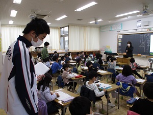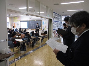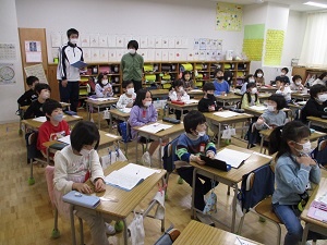 先週は、毎日の更新ができず申し訳ありませんでした。今週は少しでも学校の様子をお伝えできるようがんばります!今日は、「多摩市教育訪問」が行われました。多摩市教育委員会教育長をはじめ、教育委員会の主要メンバーが来校されました。実際に各教室を参観され、子供たちががんばって学習に向かっている様子をご覧になり、たくさんのお褒めのお言葉をいただきました。写真は、教育委員会の方々と教室を回っている時に撮りました。1・2年生の教室に中学生がいるのに気が付きましたか?今日から和田中2年生3名が、職場体験に来ています。緊張しながらも一生懸命子供たちとかかわっていました。1週間、がんばりましょう!