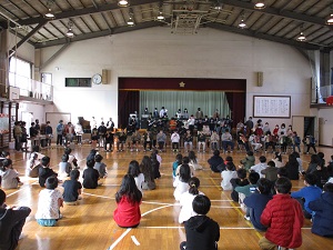 「6年生を送る会」が行われました。6年生に、これまでありがとうという感謝の気持ちと中学校へ行ってもがんばってほしいという応援の気持ちを込めて、各学年趣向を凝らした発表になりました。元気いっぱいに踊ったり、クイズで盛り上がったり、6年生と対決したりしました。笑いあり、しっとりする場面あり、すてきな「6年生を送る会」になりました。6年生が発表した合奏「ミックスナッツ」。テンポのいい迫力ある演奏でした。6年生の真剣な表情が目に焼き付いています。がんばる6年生の姿を見られるのも、後わずかとなったのが淋しいです。6年生の皆さん、残り16日を、感謝の気持ちをもって、友達との仲を深め、大切に過ごしてください。