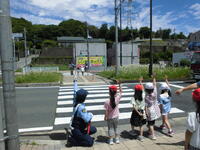 普段歩いている横断歩道での訓練に、みんな真剣に取り組みました。