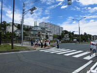 三小前のニュータウン通りの横断歩道を実際に歩きながら、