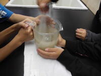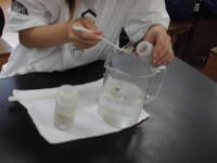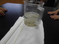 濁った水を作ってから、濁りだけを固めて沈め、きれいな水に戻すという実験を行いました。