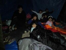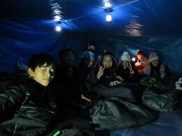 昼間のうちに作った”秘密基地”でいよいよ就寝です。