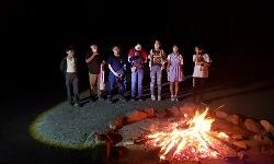夕食後も雨のためにできないキャンプファイアの代わりに