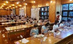 いよいよ宿舎での最後の朝食となりました。この3日間、子供たちはよく食べていました。八ヶ岳の低めの気温や環境の違いで体調管理が難しいと思っていましたが、おおむね全員食欲もあり、安心しました。このあと、片付けと掃除をして、退所式を迎えます。