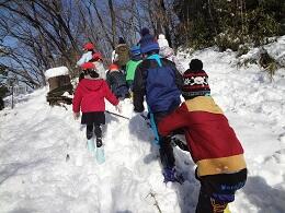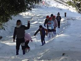 一番早かったのは4年生。足跡のない雪の上を突き進みました。