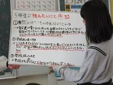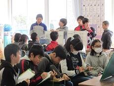 6年生が1年間総合的な学習の時間で学習してきたことを5年生に発表し、