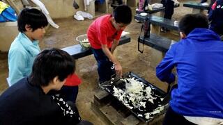 火を起こし、食材を準備し、鉄板をかけて、班のみんなで調理して、食べました。