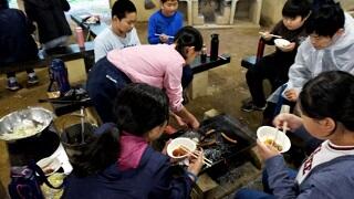6年生全員が参加した移動教室。美味しくほうとうをいただきました。アイスを食べ終わったら、豊ケ丘小学校に帰ります。