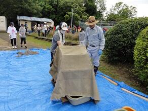 10月下旬に脱穀します。12月には収穫祭で餅つきです。
