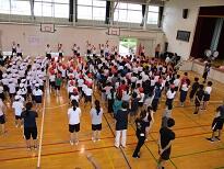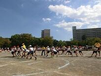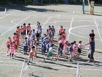 校庭が使えないため、昨年に続き、競技を縮小して体育館で実施しました。