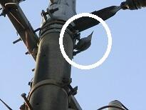 電柱の上のキャップのような金属部分をたたいているのが見えました。