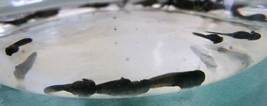あまり泳げず、みんなでかたまって卵塊にくっついています。