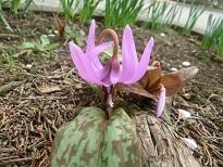 夕方近くになって花びらが外側に反りました。図鑑でよく見るカタクリの花です。