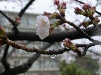 一番早く咲くのは校庭の学校林入口右脇のソメイヨシノです。