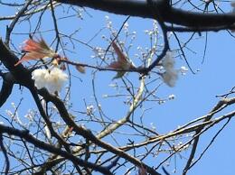 いつも一番早く咲く、校庭の学校林入口右側の木よりも