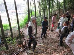 4月12日。3年生が貝取山へタケノコ掘りに行きました。