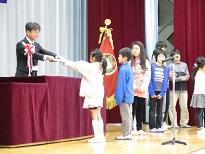 各学級の児童の代表が校長より修了証を受け取りました。