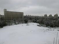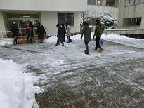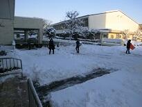 芝生の上は積雪17㎝でした 配膳室前は給食のトラックが入れるように除雪します。