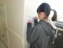 1月30日。5年生が作品の鑑賞をしました。壁を使ってワークシートを記入する子どももいす。