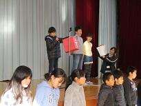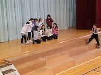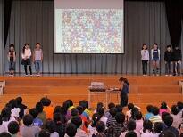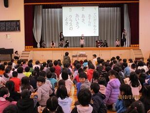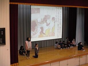 1月18日。児童集会で放送委員会が活動の様子を発表しました。