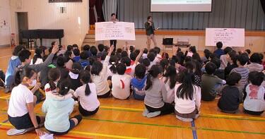 小さい学年も集中して聴いてもらえるように工夫されていました。