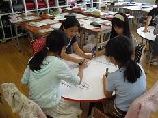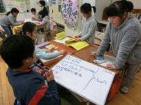 授業後、講師の先生とともに、指導法や学習内容について検討します。