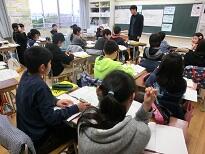 1月24日、2年生の生活科「あしたへダッシュ」の授業を全職員が見ました。