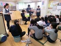 1年生は園児が飽きないようにおもてなし。遊んだり読み聞かせをしたりしていました。