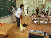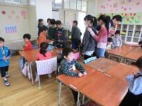 園児は1年生の授業の様子を参観し、学校の様子を見て、体験しました。